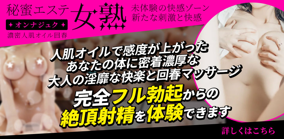 小山エリアで一番エロい風俗エステ【秘蜜エステ女熟】は熟女×ローションで、ヌルテカの女の子の下着がずれる!こすれる!食い込むの 全裸よりもいやらしい超エロ演出!いきなり全裸よりも徐々に見える見えないのチラリズムと女の子が全よりもはだけていく感覚に羞恥心を感じる姿に興奮倍増!どんなお疲れな男性でも元気になっちゃうスケベ演出にさらに回春マッサージではちきれんばかりのエレクト(勃起)が体験できます。心と体最高潮での射精・・・想像できますか?超絶気持ちいいこと間違いなし!